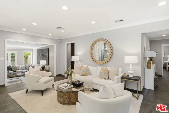 Nestled in Studio City’s highly coveted Beeman Park neighborhood on a corner lot, this fully remodeled 3 bedroom, 2.5 bathroom residence seamlessly blends refined European craftsmanship with modern California living. Every detail has been thoughtfully curated to reflect understated luxury, durability, and comfort.Inside, you’ll find Italian wood-look porcelain flooring throughout the bedrooms offering the warmth of wood with the lasting strength of porcelain. The chef’s kitchen features a striking marble island and matching marble countertops, complemented by custom Pella windows installed by Pella-certified professionals to ensure top-tier precision and energy efficiency.The primary suite is a true retreat, showcasing Italian marble on both the bathroom floors and shower walls, Schluter waterproofing systems, and heated floors extending into the shower for spa-like indulgence. The secondary bathroom highlights a curbless shower with Bianco Carrara marble in a chevron pattern, Belgian Bluestone marble wall cladding, and a Restoration Hardware vanity again featuring Schluter waterproofing and radiant heated floors. A third designer bathroom continues the theme with a Restoration Hardware vanity, marble mosaic flooring, and classic white subway tile walls finished with the same professional Schluter shower system. Step outside to your private Italian porcelain-tiled patio, complete with a covered trellis, PebbleTec pool and spa, glass mosaic waterline tile, built-in gas BBQ and fire pit creating the perfect backdrop for effortless entertaining and year-round California living. This home represents the best of Studio City luxury, a turnkey masterpiece in the heart of Beeman Park, designed for those who appreciate quality, craftsmanship, and comfort at every turn.