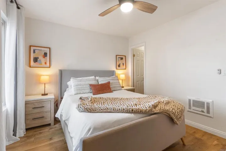 Welcome to this upgraded top-floor condo in the gated community of Arbor Hill, just 2.5 miles from the beach and minutes from Downtown Oceanside, Camp Pendleton, and major freeways. This light-filled home features an open floor plan with modern tile flooring, recessed lighting, and a private balcony with peaceful views and a convenient storage closet. The bedroom includes a custom-built walk-in closet, while the bonus nook offers a built-in vanity/desk and wardrobe, perfect for a home office or dressing area. The kitchen is equipped with newer LG stainless steel appliances and flows seamlessly into the living area for effortless coastal living. Additional upgrades include a dual-pane window and slider, along with fresh interior paint. Enjoy resort-style amenities including a pool, spa, fitness center, BBQ area, and assigned covered parking, all within a VA-approved community. HOA dues cover water, sewer, trash, and exterior maintenance for added peace of mind. Just a short distance to shops, restaurants, and public transportation, this turnkey condo offers the perfect combination of comfort, convenience, and coastal lifestyle in one of Oceanside’s hidden gem communities.
