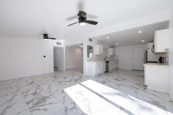 Welcome to this beautifully remodeled and move-in-ready 3-bedroom, 2-bath home offering modern upgrades and comfortable living in one of Desert Hot Springs’ most convenient locations. This home features a fully renovated interior with new appliances, a brand-new A/C system, updated flooring, recessed lighting, and an open-concept layout that seamlessly connects the kitchen, dining, and living areas. A standout feature of this property is the fully remodeled garage, which has been converted into a bonus room complete with tile flooring, a mini-split A/C system, a closet–ideal for a home office, gym, guest space, or additional living area. The laundry area is located in its own designated section, providing added convenience and functionality. Outside, you’ll enjoy a low-maintenance yard and a peaceful setting with easy access to local amenities. The home is located just minutes from shopping centers, including Stater Bros, dining options, and commuter routes, offering both comfort and convenience. This move-in-ready home is the perfect blend of modern finishes, flexible living space, and a great location–ready for its next resident to enjoy.