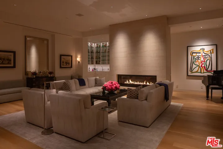Set high in the hills above Los Angeles, this newly completed Beverly Hills estate represents six years of precision planning and expert craftsmanship, framed by sweeping 180-degree southern views that stretch from the Pacific Ocean to the shimmering city skyline. 9966 brings together best-in-class materials, advanced systems, and resort-caliber amenities across three thoughtfully designed levels, resting on more than two and a half acres of manicured grounds. Through a gated drive and behind custom steel-framed doors awaits 15,700 square feet of meticulously crafted living space, featuring rare rift-sawn white oak flooring, a limestone fireplace, and oversized custom windows that flood the home with natural light. The Bulthaup-designed kitchen is outfitted entirely with Gaggenau appliances, while a Crestron-controlled environment seamlessly manages the home’s audio system. A climate-controlled wine room with display shelving for up to 640 bottles serves as both a collector’s showcase and an architectural focal point. In addition to the interior living space, the estate offers more than 7,200 square feet of outdoor terraces, designed for dining, lounging, and entertaining against a stunning backdrop of sweeping views. A sculptural staircase and elevator lead to the upper floor, where the primary suite features dual bathrooms, dual walk-in closets, and commanding panoramic vistas. Additional spaces include multiple guest suites, a glam room, art studio, massage room, full gym, and an acoustically engineered Dolby Atmos theater. A 23-zone RVR HVAC system by Daikin provides precision climate control, allowing every room to maintain its own ideal temperature. Outdoors, the amenities continue with a 52-foot pool, private tennis court, and carefully maintained green spaces. Rarely does a property in Beverly Hills offer this level of infrastructure, privacy, and architectural clarity, making 9966 a true testament to timeless luxury and modern design.