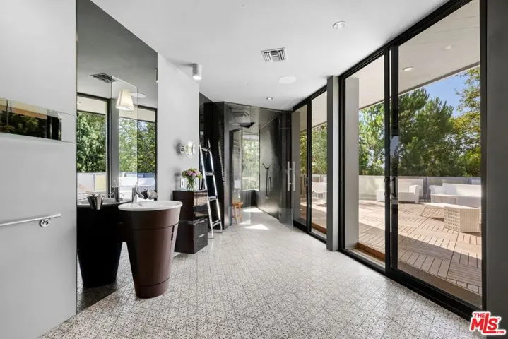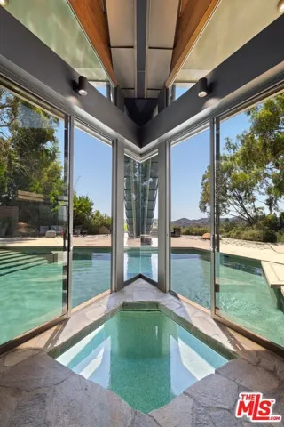 An extraordinary value for a home of this scale and significance offering over 9,600 square feet of architectural brilliance, soaring ceilings, dramatic entertaining spaces, one-of-a-kind pool/spa, views, and complete privacy behind gates. A true architectural landmark, this one-of-a-kind Bel Air estate, the “Ursa Major” is both a piece of history and a work of art. Originally conceived by renowned AIA architect David Rich and inspired by FAIA Frank Lloyd Wright, this estate was custom built for basketball legend Wilt Chamberlain (“The Big Dipper”). Perched atop a secluded 2.5-acre promontory at the end of a quiet cul-de-sac with only nine other homes, this serene neighborhood is immersed in nature and surrounded by soaring eucalyptus trees and sweeping canyon views, offering a sense of peace rarely found in Los Angeles. With absolute privacy behind massive gates, views include city and valley views, Stone Canyon Reservoir and all the way to Long Beach on clear day. Recent renovations were carefully considered to blend luxurious materials while preserving its bold architectural soul, including soaring volumes, organic geometry, five-story great room with cathedral ceilings, tree-like columns, walls of glass and signature Bouquet Canyon stonework. Layout includes a massive primary retreat with his and her baths and closets with city views, media room, guest-maid quarters, guest room with separate access, billiard lounge, redwood sauna, outdoor kitchen and expansive indoor-outdoor entertainment areas surrounded by lush gardens including a look-out point and fig, orange and lemon trees. At the heart of the property lies one of the most extraordinary residential pools in Los Angeles – a natural-style body of water that wraps around the home and even allows you to swim directly from the outdoors into the main residence – a feature impossible to replicate under today’s building codes. A grand motor court and three garages accommodate 10+ vehicles, while an additional climate-controlled detached structure provides ample storage. A celebration of visionary design, privacy, and natural beauty, this estate stands as a living testament to timeless architecture and the enduring spirit of its legendary creator. Truly an “Architectural Wonder” and a must-see for discerning buyers who value privacy, artistry, and history in one of Bel Air’s most prestigious enclaves. Ideally located between Van Nuys and Burbank Airport for jetsetters and private travel. Seller will consider cryptocurrency as a form of payment. Verification of funds required to schedule showing with 24-48 hours notice. Consider tennis shoes to walk the expansive grounds!