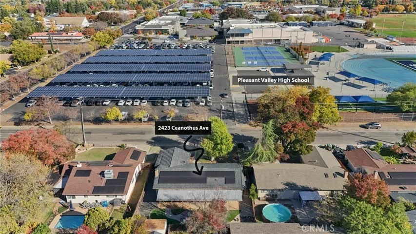 Welcome to a home where comfort, convenience, and community come together in one of Chico’s most desirable locations. Situated in a prime north Chico neighborhood, this beautifully updated 3-bedroom, 2-bathroom home spanning 1,672 sq. ft. has been lovingly cared for and thoughtfully improved, offering both modern upgrades and meaningful spaces to truly live in. From the moment you arrive, you’ll feel the warmth this property offers. The fenced front yard has been a favorite spot for the sellers, perfect for watching kids play under the shade of the large front yard tree, practically made for a swing. Enjoy morning coffee or dine outdoors on either the front or back patio, each offering its own peaceful setting to start or end the day. Inside, the layout is inviting and purposeful. The cozy sunken living room sets the stage for family movie nights, relaxing with a book, or gathering with loved ones. The kitchen and dining spaces flow easily for everyday living and entertaining, and the HUGE covered back patio provides an exceptional space for BBQs, celebrations, and year-round enjoyment. The low-maintenance backyard turf keeps upkeep simple and weekends free for fun. The guest bathroom features a deep soaking tub, ideal for unwinding after a long day, while the primary suite includes updated vinyl flooring in the bathroom and closets. Fresh interior paint throughout gives the home a bright, clean feel. Living here means more than just enjoying a beautiful home; you get a lifestyle. The sellers have loved the convenience of having a grocery store nearby, the energy of community events right across the street at PV High School, and being just a short drive or bike ride to Upper Bidwell Park, Wildwood Park, and Chico’s endless outdoor recreation, including trails, disc golf, swimming, biking, and scenic nature escapes. Additional highlights include an 8.54 kW Leased Solar System with battery backup, helping keep utility costs low and offering peace of mind, plus new vinyl flooring in the primary bath and closets. With a location that checks every box and upgrades that make daily living effortless, 2423 Ceanothus Avenue isn’t just a place to live; it’s a place to thrive.