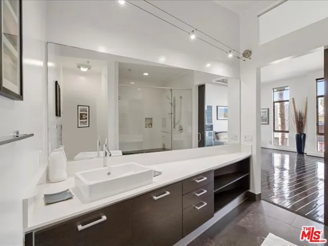 Experience modern living at the architecturally distinct Steel Lofts, where contemporary design meets the energy of the Marina Arts District. This spacious second-floor residence features high ceilings, expansive windows, and polished hardwood floors that create a bright, airy atmosphere. The flexible floor plan allows for multiple configurations, with many residents utilizing the additional space as a den, home office, or even a second bedroom. The kitchen features sleek cabinetry, a large center island, and high-end appliances that blend seamlessly into the modern design. Both bathrooms feature refined finishes, one with a soaking tub and the other with an oversized walk-in shower. A large patio provides the perfect extension of the living space for relaxing or entertaining outdoors. Additional highlights include in-unit laundry and two secured parking spaces in a gated garage. Conveniently located near Abbot Kinney, Venice Beach, and the Marina Marketplace, this home combines style, function, and convenience in one of the Westside’s most desirable neighborhoods.