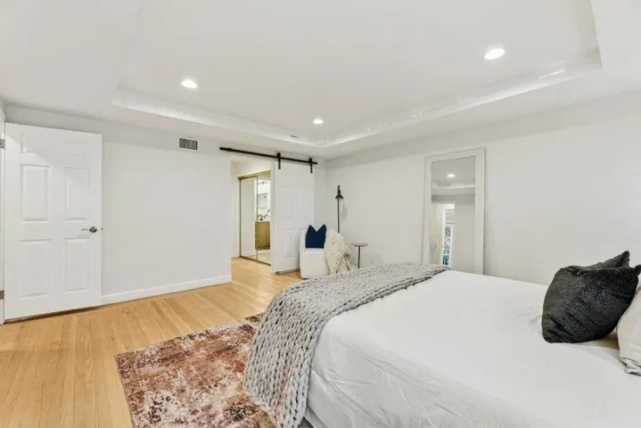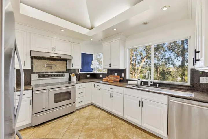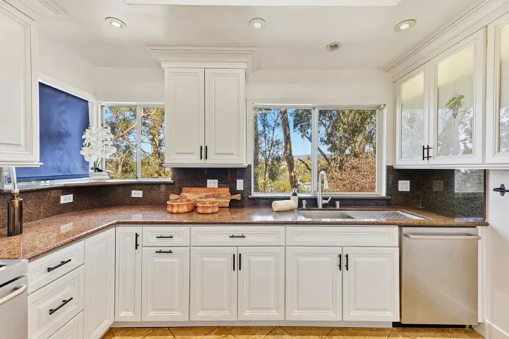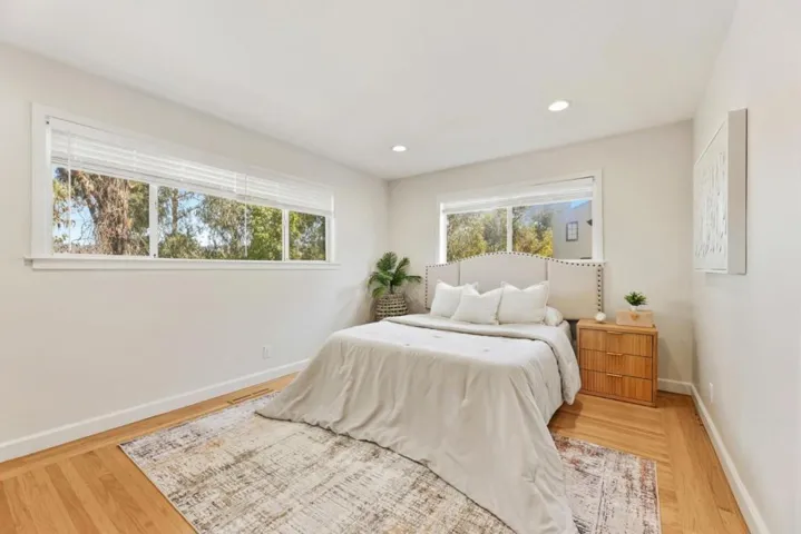 Set on a peaceful, tree-lined cul-de-sac in sought-after Crocker Highlands, this inviting mid-century home blends timeless character with thoughtful modern updates. The bright living room welcomes you with rich refinished hardwood floors and a classic wood-burning fireplace, creating a warm and comfortable gathering space. Beyond the dining area, the kitchen enjoys a sense of privacy and calm, overlooking mature trees and stunning sunset views. The main level features a spacious primary suite, a secondary bedroom and full bath, and generous closet storage enhanced with custom Elfa systems. The lower level offers exceptional flexibility with a second en-suite bedroom, an additional bedroom and bath, a family room, and a full kitchen opening to a large deck, ideal for entertaining, extended family, or guests. Upgrades include refinished hardwood floors, Elfa closet systems, newer roof, furnace, and freshly painted interior, foundation improvements, an updated deck, and a concrete slab. The newly sodded front yard with irrigation adds fresh curb appeal, while the unfinished basement and two-car garage with custom cabinetry provide abundant storage. Conveniently located near the shops and dining of Park Boulevard, Lakeshore, and Grand Avenue.