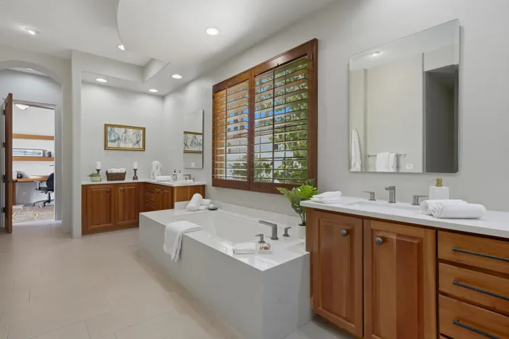 OPEN HOUSEE Saturday and SUNDAY 11/15 12-3PM Nestled within the prestigious Mountain View Country Club in La Quinta, this stunning residence combines elegant design, open-concept living, and breathtaking outdoor views. The flowing floor plan seamlessly connects the Great Room, Dining Room, and Kitchen, creating the perfect setting for entertaining or everyday comfort. The spacious primary suite offers a private retreat with a spa-inspired bath featuring a Roman tub, separate shower, and a flex room with direct courtyard access that’s ideal for a fitness area, office, or quiet getaway. 4 en-suite bedrooms Guests will enjoy the privacy of the courtyard casita. Step outside to your own desert oasis with stunning mountain and fairway views. The beautifully landscaped backyard features a recently constructed sparkling pool and spa, covered patio, and multiple areas to relax or dine al fresco — perfect for enjoying desert sunsets and the peaceful ambiance of Mountain View Country Club.Residents enjoy access to resort-style amenities including a 24,000 sq. ft. clubhouse with dining, lounges, and social events; a 7,000 sq. ft. fitness and aquatic center with spa services and classes; plus tennis, pickleball, bocce, and more.Buyers to pay $10.000. social membership fee.Beyond the gates, La Quinta offers championship golf, boutique shopping, fine dining, and scenic hiking trails — the perfect blend of luxury and lifestyle in the heart of the desert.