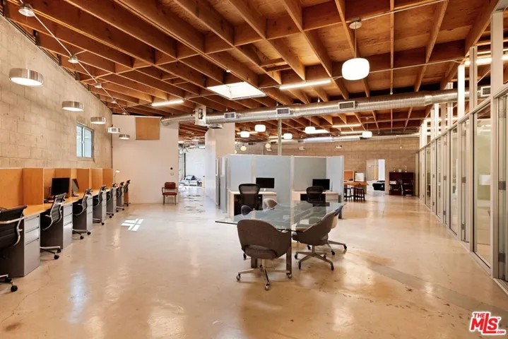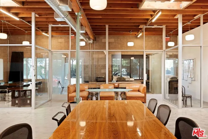 Located near Culver City, this sunlit and beautifully designed office space with iconic furnishings and art provides inspiration for a multitude of different uses. Offered for sale and for lease (partial, or the entire building). Highlights include: Intercom gated entry and secured off-street parking. Separate glass door entrances inside the gate. Two reception areas. Ten glass enclosed offices and three conference rooms. “Farm table” type workstations, communal “living room” gathering spaces, and traditional workstations & cubicles. Outdoor covered private patio area with retractable awnings, glass table, chairs, and lounge seating provides additional gathering space. Kitchens, bathrooms, and IT rooms in each of the three adjoined office spaces. Three separately metered 200 amp panels, single phase. Soundstage Room for video and audio recording. Ceiling heights of 11 ft+. Please refer to property flyer/brochure for more detailed layout information. Co-listed with Jay Luchs of Newmark. Please contact LA1 or LA2 for more information, showings, and pricing.