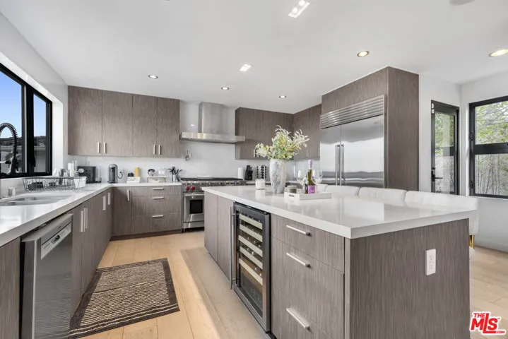 Exquisite Entertainer’s Villa in Hollywood Hills Fully Furnished + MoveIn ReadyStep into sweeping panoramic views and refined design in this recentlyrenovated SpanishContemporary residence nestled on a top view street in the prestigious Outpost Estates. Featuring 4 bedrooms and 4 baths across approximately 4,079sqft of living space, this threelevel home sits on an 11,625sqft lot. Compass+2kensingtonbeverly.com+2On the main level, you’ll find an open plan anchored by a private courtyard, living room with balcony, study separated by a striking marble fireplace, dining room and a chef’s kitchen equipped with topoftheline appliances. Compass+1The primary suite offers a spacious walkin closet, dual vanity, soaking tub and private patio. The lower floor delivers an entertainmentlevel flex space ideal for a screening room, gym or yoga studio opening via pocket Fleetwood doors to an infinity pool and spa with citylight views. kensingtonbeverly.com+1Additional features include builtin audio, firepit terrace, twocar garage, waterfiltration system, Nest thermostats and custom finishes throughout.