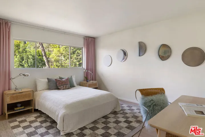 Tucked away in the serene hills of Glendale’s coveted Rossmoyne neighborhood, this spacious mid-century home is a light-filled sanctuary with spectacular hillside views. Built in 1965 and mindfully updated, the residence spans two levels, with large windows and sliding glass doors seamlessly bringing the outdoors in. The bright and open living room is anchored by a fireplace; the kitchen with generous storage opens directly to the dining area. Three bedrooms include a primary suite with an en-suite bath; on the lower level, both bedrooms enjoy outdoor access. A bonus den with a wet bar adds flexibility for a media room or creative space, and flow is easy to the large deck, a breezy spot for taking in the stunning vistas and colorful sunsets. Multiple patios create a tranquil setting for relaxing and entertaining amid lush natural surroundings. The great location puts you close to Verdugo Park and vibrant dining and shopping options, including the Americana at Brand and the upcoming Erewhon.