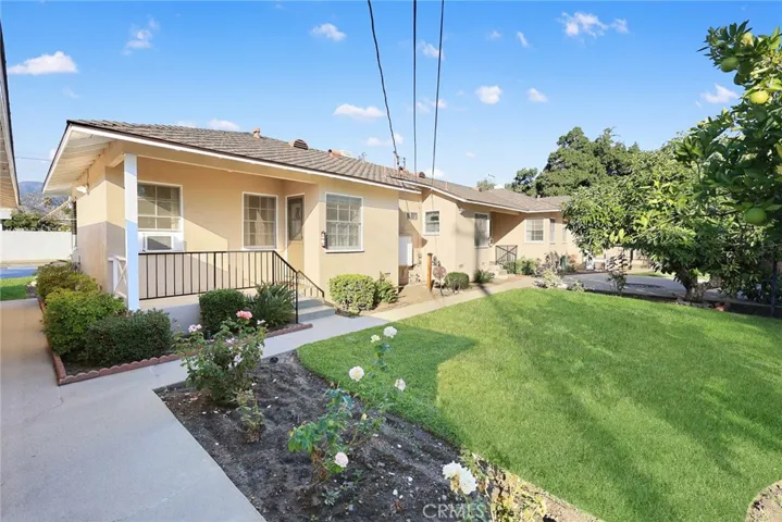 Charming Mid-Century Triplex on Oversized Corner Lot | All Units Vacant | ADU Potential. Incredible opportunity to own a well-maintained, single-level mid-century triplex located on a generous 75’ x 140’ corner lot with alley access. Freshly painted exterior. This character-filled property offers excellent flexibility for owner-users or investors looking to establish market rents and explore future development potential, including ADU possibilities. The triplex features three single-story units, each showcasing classic stucco siding, front and back porches, and two separate entrances for added privacy and convenience. There are two one-bedroom, one-bath units, both offering laundry closets, newer floor coverings, tiled kitchen countertops, large kitchen sinks, hallway and kitchen storage, and individual window air conditioning units. The two-bedroom, one-bath unit includes a separate laundry room with built-in storage and a utility sink, along with newer flooring in the kitchen and laundry area, tiled countertops, a spacious layout, central air/heat and the same attention to storage and comfort. All bathrooms in the units feature shower-over-tub configurations. Kitchens are equipped with essential appliances including stove/oven, microwave, and large sinks. All kitchen appliances are new. Every unit is bright and functional, offering an excellent foundation for future value-add improvements or immediate rental. The property also includes a large interior courtyard that creates a peaceful community setting and encourages outdoor living. A detached four-car garage sits at the rear of the lot, with alley access, and offers prime potential for conversion to an accessory dwelling unit (buyer to verify). In addition, three more off-street parking spaces provide plenty of room for residents or guests. Recent exterior upgrades include newer block wall fencing for privacy and security, an automatic sprinkler system, and newer roof ( 10 yrs. old) Mature landscaping that features a thriving avocado tree and fruit tree. All three units are currently vacant, making this an ideal opportunity for a buyer seeking flexibility, immediate rental income, or a live-in investment scenario. This is a rare find with character, space, and long-term upside. Whether you’re looking to expand your portfolio, live in one unit and rent the others, or explore development options, this property is full of potential and ready for its next chapter.