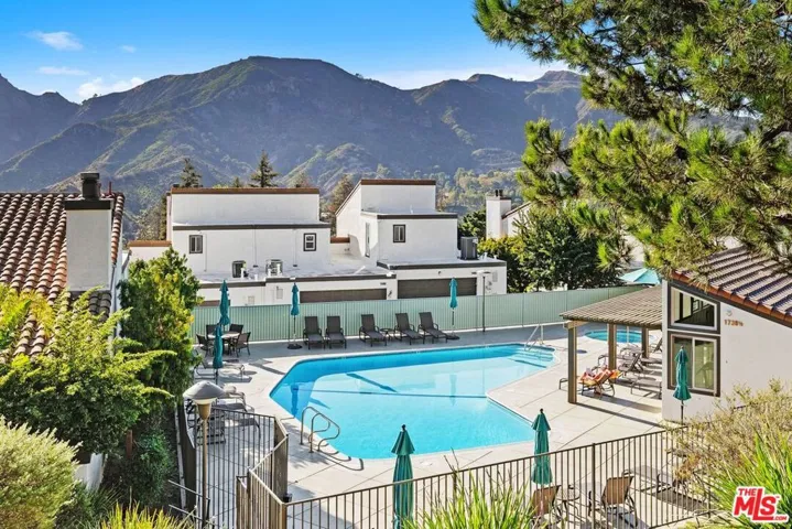 Spacious 1720 sq ft – 2 Bed / 2.5 Bath Townhouse in the Palisades Highlands. Enjoy resort-style living in this beautifully maintained townhouse featuring an open floor plan and abundant natural light. The large eat-in kitchen includes travertine tile, stainless-steel gas appliances, and plenty of counter space, perfect for cooking and entertaining. The expansive master suite offers soaring ceilings, a walk-in closet, and a private balcony. The generous second bedroom includes a jacuzzi tub and mountain views. Additional features include a built-in office space, a separate dining room, and a bright living room that opens to a private patio. Washer/dryer on the second level and an attached large two-car garage provide everyday convenience. The community offers tennis courts, pool, jacuzzi, sauna, and gym, all set in a serene, well-kept complex. Located in the sunny Palisades Highlands near scenic hiking trails and just minutes to the beach, Santa Monica, Malibu, and the Westside.