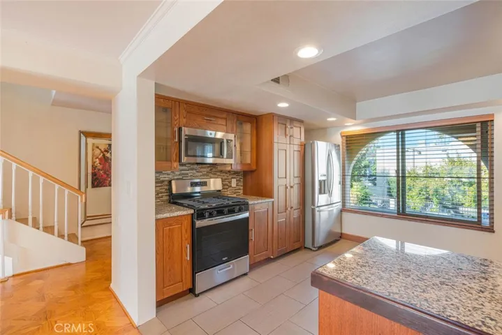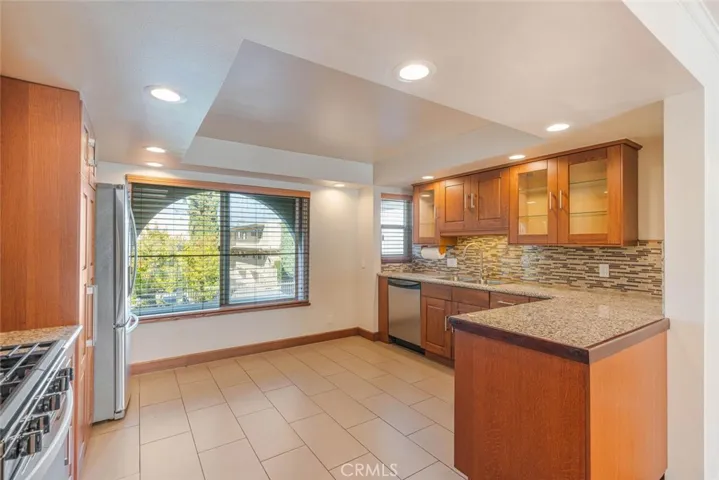 Stylish. Spacious. Sophisticated. Welcome to this beautifully updated tri-level townhome in the exclusive gated community of Villa España. Nearly 1,800 sqft of airy, open living space features soaring ceilings, recessed lighting, and a striking floor-to-ceiling fireplace. Sliding patio doors with plantation style shutters open to a tranquil patio that seamlessly blends indoor comfort with outdoor living. The remodeled kitchen is a chef’s delight with granite countertops, newer cabinetry, and stainless-steel appliances. Upstairs, the primary suite is a true retreat with an updated ensuite bath featuring dual sinks, an oversized walk-in closet, and a cozy fireplace. The guest bedroom and full hallway bath are equally generous, each offering a comfortable private escape. The attached two-car garage provides direct home access, in-unit laundry, and an EV charger for modern convenience. Enjoy resort-style living with park-like grounds, a sparkling community pool and spa, two saunas, a recreation room and ample guest parking—all just moments from Ventura Blvd’s premier shops, dining, and easy 101 access. Rent includes both water and trash.