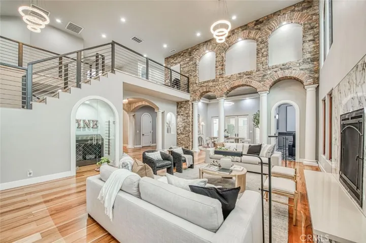 The main-level primary suite serves as a serene retreat, featuring a spa-like bathroom, inviting fireplace, and an expansive custom super closet. Entertainment shines with a cutting-edge, soundproof theater room, while a versatile bonus area off the kitchen easily adapts into a private guest suite or multigenerational space.