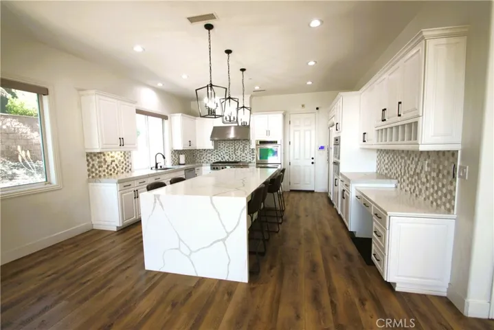 Welcome to Haven View Estates, an exclusive guard-gated community nestled in the prestigious foothills of Rancho Cucamonga. Known for its luxury estates, breathtaking mountain and city-light views, and proximity to the area’s finest amenities. This stunning five-bedroom, five-and-a-half-bathroom custom residence showcases exquisite craftsmanship and elegant design throughout. As you approach the property, you’re greeted by a beautifully landscaped front yard and an impressive architectural façade that combines timeless sophistication with modern elegance. Inside, soaring ceilings and expansive windows fill the home with natural light, highlighting the open-concept layout and high-end finishes. The grand foyer opens to a formal living room with a dramatic fireplace, ideal for entertaining guests or enjoying quiet evenings by the fire. The adjacent formal dining room offers an elegant setting for gatherings, complete with custom lighting and views of the inviting yard. The gourmet kitchen is a chef’s dream, featuring professional-grade stainless steel appliances, a large center island with bar seating, custom cabinetry, and a walk-in pantry. An open concept adjoining family room with a second fireplace create a warm and inviting space for everyday living. Each of the five spacious bedroom suites offers comfort and privacy, with en-suite bathrooms and generous closet space. The luxurious primary suite serves as a private retreat, boasting panoramic city-light views, a sitting area, and a spa-inspired bathroom with dual vanities, a soaking tub, and an elegantly designed tandem walk-in shower. The convenient powder room adds a touch of convenience and style for guests. Step outside to enjoy the beautifully designed backyard, where you’ll find multiple seating areas, lush landscaping, private putting green and ample space for outdoor entertaining. Whether hosting a barbecue, relaxing under the covered patio, or simply soaking in the serene views of the San Gabriel Mountains, this outdoor oasis is a true extension of the home’s elegance. Located within an award-winning school district and just minutes from hiking and horse trails, fine dining, and two major shopping centers, this home offers both privacy and accessibility. Haven View Estates provides the perfect blend of luxury, community, and value — an unparalleled opportunity to own a remarkable estate in one of Rancho Cucamonga’s most sought-after neighborhoods.