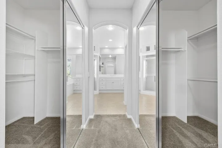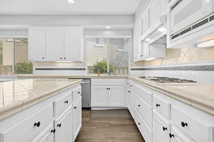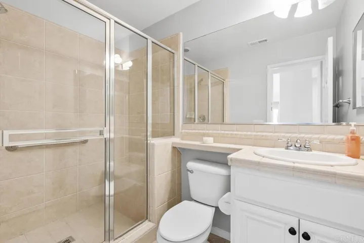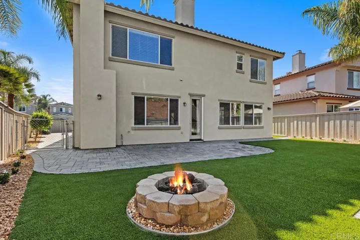 Welcome to this exceptional 4-bedroom+ office and 3-bath Calavera Hills home with owned solar, a main-level room, full bath, and a large yard with a swim spa. A soaring two-story foyer welcomes you and flows into the formal spaces. The two-story dining room showcases a wall of windows that fill the space with natural light and seamlessly lead into the adjacent formal living room. Luxury vinyl plank floors extend throughout this level, leading to the heart of the home: an expansive kitchen with classic white cabinetry, a center island with breakfast bar, double ovens, and a daily dining area. The family room centers on a fireplace with a media niche and a wall of windows to the yard. Completing this level are a bedroom with French doors, a full bath with a walk-in shower, and a laundry room with a utility sink and upper cabinets. An elegant, curved staircase leads to the generous primary suite with a fireplace, two walk-in closets, and a private retreat that closes with French doors. The primary bath includes a large walk-in shower with a bench, an oversized soaking tub, two vanities plus a seated vanity, and a separate water closet. Three additional bedrooms, a hall bath, and an expansive walk-in linen closet complete the upper level. Outdoors, enjoy turf, a paver patio, a gas fire pit, a large swim spa, and two oversized side yards, one turf and one concrete. Additional features include dual-zoned AC and furnace (new in 2021), Ecobee thermostats, ceiling fans, and a Ring camera system. Conveniently located near Lake Calavera Preserve with access to Calavera trails, parks, shopping, and a short drive to the beach.