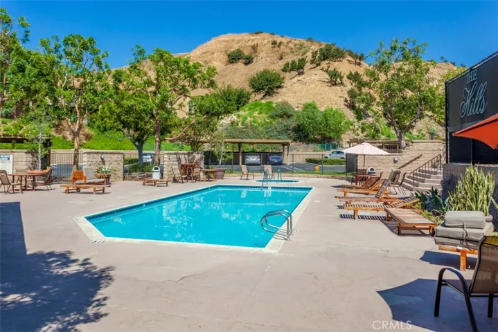The home includes a private laundry room with a washer and dryer, plus two covered carports. The Hills HOA amenities feature two pools, four spas, tennis courts, playgrounds, and a clubhouse with a fitness center. HOA dues cover water and trash for added convenience.