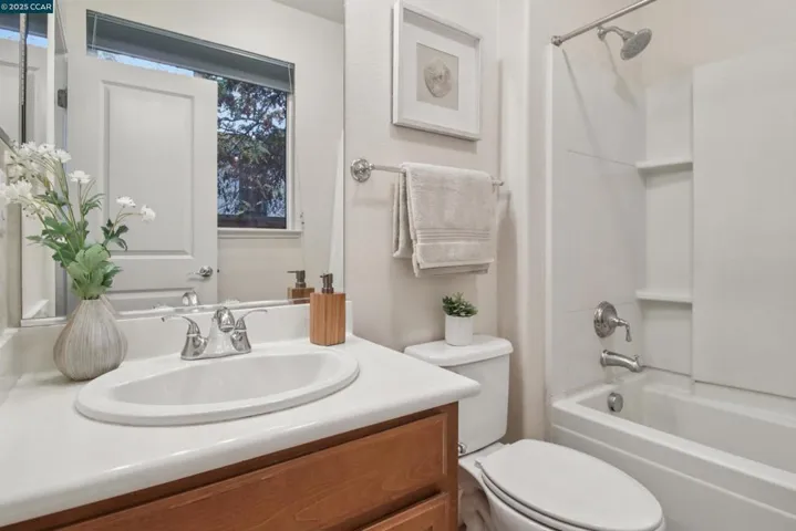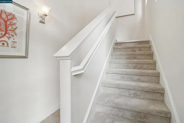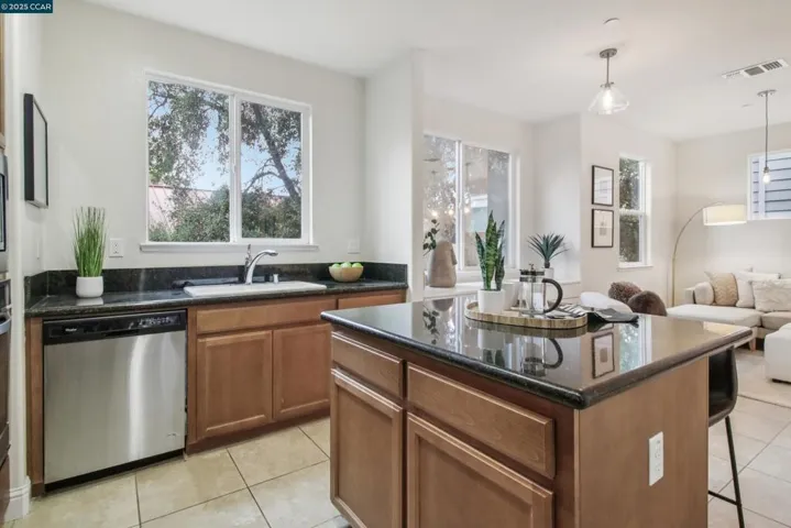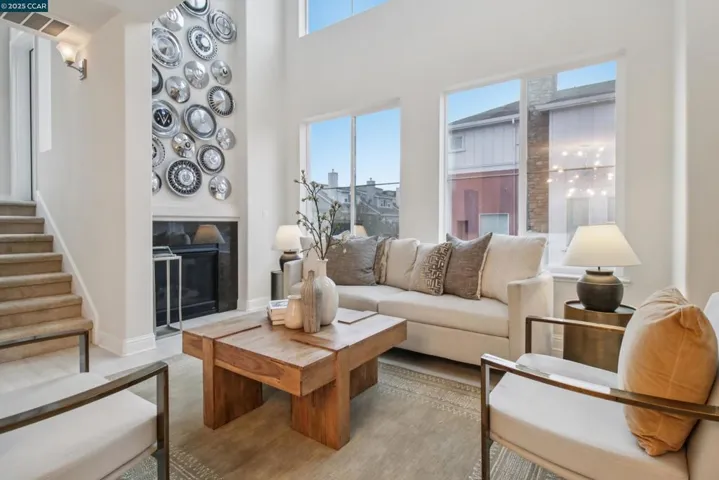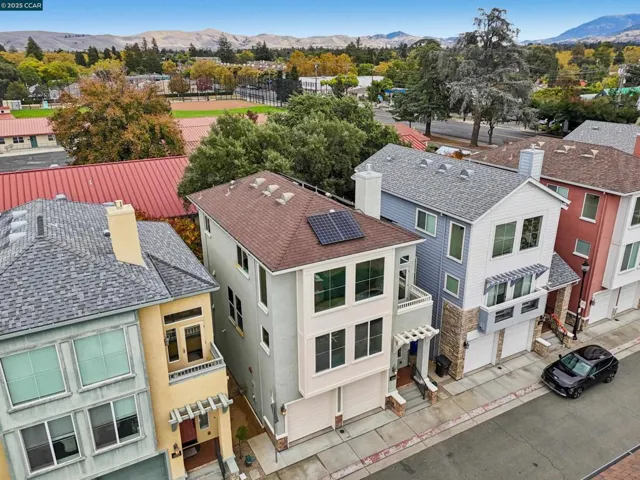 Like brand new in a small enclave of just 37 homes, located steps from Todos Santos Plaza this meticulously maintained single-owner home was built in 2015. Offering 1,777 sf. of living space where modern aesthetics meet comfort and functionality with fresh paint, plush new carpeting and durable luxury vinyl this home is truly move in ready. The main level features a versatile bedroom or office with a full bath and outdoor access, ideal for guests or a quiet retreat. The second level showcases soaring ceilings and numerous windows that flood the space with natural light. A spacious eat-in kitchen and generous family room are anchored by a cozy gas fireplace, creating the perfect setting for entertaining or relaxing evenings at home. Upstairs, the primary suite feels like a spa retreat with a soaking tub, separate walk-in shower, and dual vanity, plus another bedroom and full bath. Additional highlights include paid solar panels for added energy efficiency, a two-car garage, laundry room with sink and cabinetry, ample storage throughout, and a darling outdoor patio with sleek horizontal redwood finishes—a tranquil spot to enjoy the fresh air. Unique to the area, updated, and perfectly located near restaurants, coffee shops, shopping, and BART. Hurry, this special home won’t last!
