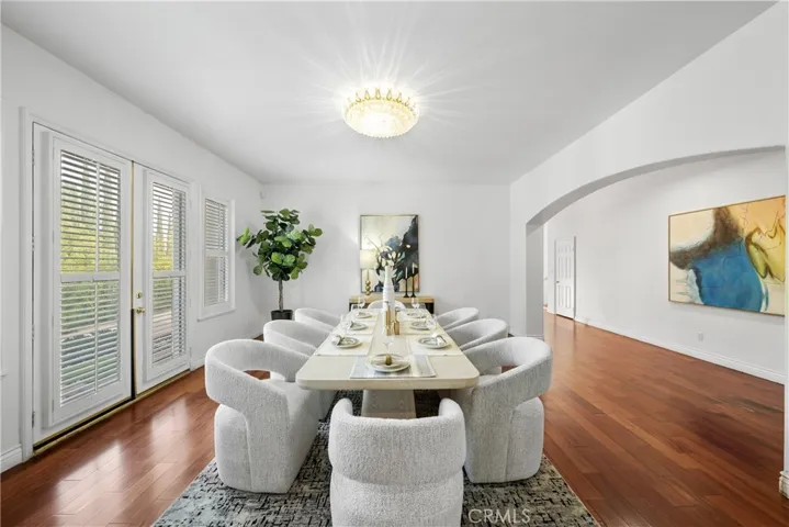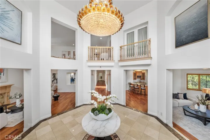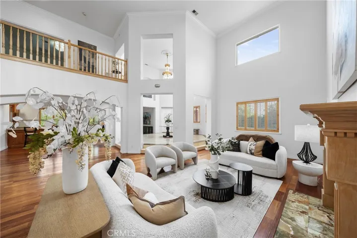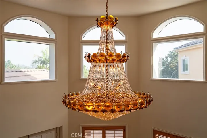 Grand Interiors. Step through the double doors into an impressive foyer crowned with a dazzling crystal chandelier and soaring ceilings that immediately evoke a sense of grandeur. The formal living room exudes warmth and elegance with its cathedral ceiling and fireplace, while the formal dining room provides an exquisite setting for hosting lavish gatherings.