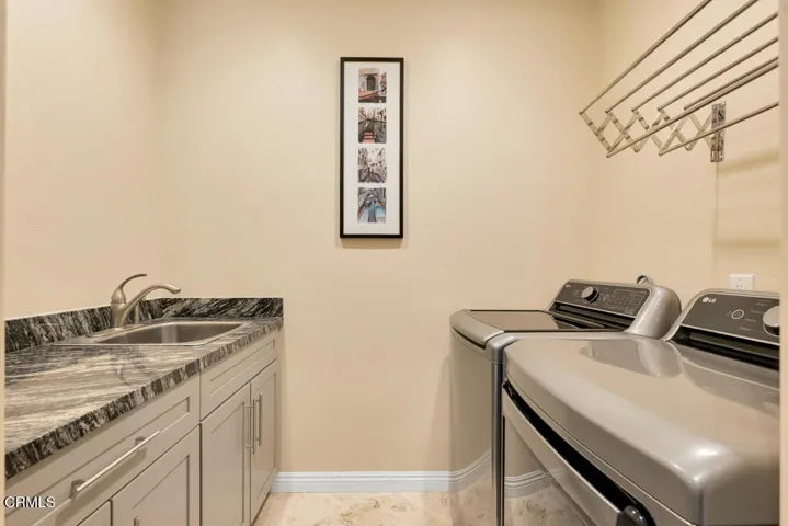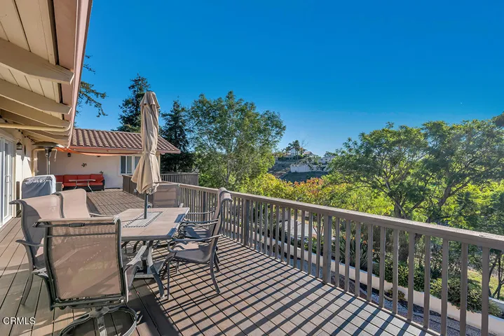Perched in the prestigious Las Posas Estates, this remarkable hillside residence captures sweeping views of the city, mountains, and ocean–creating an entertainer’s paradise in an atmosphere of tranquility and sophistication. Nestled on a quiet cul-de-sac street, this custom-designed home seamlessly blends refined elegance with effortless comfort. The main level features three spacious en-suite bedrooms, with the primary bedroom designed to take advantage of the home’s stunning vistas. The gourmet kitchen is a culinary dream, showcasing a commercial-sized refrigerator and freezer, professional-grade gas range, walk-in pantry, granite countertops, and an inviting eat-at counter. Morning light pours through expansive windows, illuminating the open-concept living and dining areas that flow effortlessly to wrap-around decks–ideal for indoor-outdoor entertaining. The primary suite is a serene retreat with vaulted wood beam ceilings and dramatic picture windows framing the breathtaking views. Downstairs, a stylish speakeasy bar with tin ceiling plus bonus room with a dedicated powder room set the stage for memorable gatherings, while sliding glass doors open to a spacious patio complete with a firepit and outdoor lounge. Downstairs also includes a fourth bedroom or office plus a 3/4 bath. Film enthusiasts will enjoy the dedicated media room with cozy, oversized theater seating, a 96′ screen, and projector. For car collectors and hobbyists, the property offers exceptional amenities–including a generous three-car garage, separate storage/workroom large enough to accommodate another vehicle, and a large gardening workshop in addition to an outbuilding with car lifts capable of accommodating up to six vehicles and its own solar system. Meticulously maintained and thoughtfully upgraded, the home features high-end amenities such as owned solar, EV charging, whole house back up generator, recirculating hot water, custom blinds, gutter guards, and paver driveways and patios. The circular driveway provides a grand entrance, complemented by space for RV or boat parking. Coming in at just over an acre, the property can accommodate extra cars, toys, and fun. Just minutes from Camarillo’s premier golf clubs and conveniently located between Santa Barbara and Los Angeles, this one-of-a-kind estate offers unparalleled privacy, craftsmanship, and comfort–with views that inspire, and spaces that invite you to live beautifully.