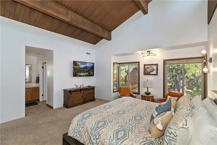 Welcome to a truly one-of-a-kind residence in stunning Metcalf Bay ~ An elegant home surrounded by multimillion-dollar lakefront estates and just a short stroll to Pleasure Point Marina ~ Offering the perfect blend of sophistication, comfort, and convenience, this property includes its own boat dock with easy lake access, making it an exceptional opportunity to enjoy the very best of luxury living in the heart of Big Bear ~ This home is ready for any season ~ Set on an expansive 14,000+ sq. ft. lot, the grounds are beautifully landscaped and feature a circular driveway, ample parking, and a private fenced area with a volleyball court ~ Perfect for outdoor entertaining and pets alike ~ The spacious deck invites you to relax beneath the pines, savor your morning coffee, or unwind in the evening with a glass of wine as you watch the sunset paint the sky in golden hues ~ Inside, this thoughtfully designed home offers a seamless blend of rustic charm and modern elegance ~ The living room features a cozy fireplace for gathering with loved ones, including a screen projector that transforms the living room into your own movie theater ~ While high ceilings and large windows throughout allow natural light to pour in, creating an airy and inviting atmosphere ~ A main-level bedroom with bathroom attached ensures accessibility and convenience for family and guests, while three additional bedrooms upstairs with high ceilings provide ample space for everyone ~ Additional highlights include an oversized laundry/mudroom off the garage, located on a paved and maintained road for easy year-round access, and a location just minutes from The Village’s boutiques, dining, and entertainment ~ Whether you’re seeking a luxurious primary residence, a serene second home, or an investment property to offset costs, this lakeside retreat offers timeless appeal and endless possibilities ~ Don’t miss your chance to experience Lake living at its finest ~ offered at an exceptional value.