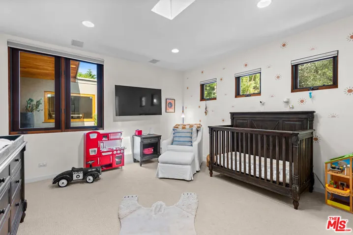 Tucked behind a sculptural concrete wall in Encino’s coveted Royal Oaks enclave, this striking residence is a masterwork of California Mid-Century Modern design reimagined with organic and contemporary influences. A private courtyard with a burbling fountain sets a tranquil tone, while open living spaces showcase exquisite craftsmanship, natural textures, and refined simplicity. The living room’s soaring exposed-wood vaulted ceiling crowns a wall of glass that highlights the home’s effortless indoor-outdoor flow. The primary suite serves as a serene, Zen-inspired retreat, while its spa-like bath is a study in natural luxury featuring warm wood accents, hand-set stone walls, a skylit rain shower, and a deep soaking tub. Beyond, an architectural landscape of flagstone terraces, olive trees, and sculptural plantings unfolds to reveal sweeping canyon views. The expansive Ipe deck offers built-in seating, an outdoor kitchen, and seamless flow to a stunning stone-framed pool with an adjacent cold plunge. A glass-enclosed sauna with panoramic views and a secret treehouse nestled among mature trees complete the property’s resort-like atmosphere an inspired fusion of design, nature, and quintessential California modern living.