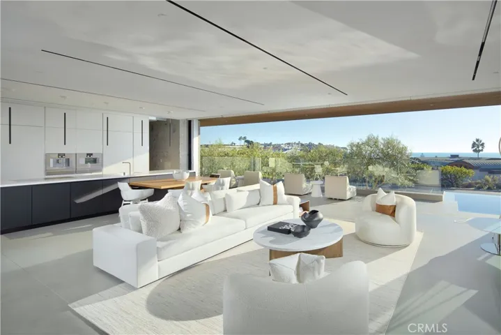 Sculptural architecture meets refined coastal living in this award-winning custom Horst Architects residence inside Irvine Cove, Laguna Beach’s most exclusive private community. Clean modern geometry, dramatic scale, and warm natural materials come together with effortless sophistication. Upon arrival, a bold architectural procession unfolds along floating steps skimming an infinity-edge pool, moving past linear fire features and sleek outdoor lounges before reaching an oversized glass pivot entry.