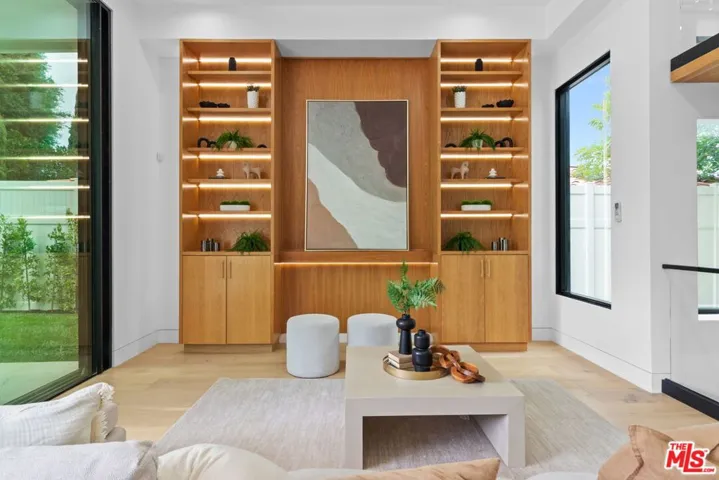 Welcome to this Stunning Home in Encino, South of the Blvd, in Lanai School District. This New Construction Property features 5 Bedrooms + Gym + Theater. 13 foot Ceilings, Living Room and Den with Built in Bookshelves with Lighting, Engineered Hardwood Floors Throughout, Glass Staircase leads Through all 3 levels with Gorgeous Drop Chandelier. Custom Built Kitchen Cabinets, Jennair Appliances, Quartz Countertops, Floor to Ceiling Glass Wine Cellar, Large Kitchen Island. Home features 12 Foot Sliding Glass Door opening the Entire Den and Dining area to Covered Patio and Backyard. Great Place to Entertain, Al fresco Dining and sit with a Glass of Wine. Grass Backyard with Pool and Baja Spa and Built in BBQ. Private Tree Lined Yard faces West with Great Afternoon Sun Exposure. Upstairs is a Large Primary Suite with Double Door Balcony that overlooks the Backyard, Beautiful Double Door Balcony to Sit outside and enjoy LA Sunsets. Two Large Kids Bedrooms, Each Room features En-suite Bathrooms with Gorgeous Tiled Showers. Kids Bedrooms have Shared Balcony, Primary has Large Custom Built Closet. Primary Bath also features Soaking Tub, Double Shower Head Walk-in Shower. 4th Bedroom/Office with En-suite Bathroom on Main level. 5th Bedroom/Maids or Nanny Suite on Bottom Level with Gym and Separate Bathroom. Double Door Entry to Home Theater with Theater lighting and Projection Screen. This Home Features a European Air/Heat with each room able to control it’s on temperatures, 3 HVACs, 2 tankless Water Heaters, Completely Wired for Surround Sound Plus Speakers, Laser Perimeter Alarm, Cameras, Side by Side Laundry, Paid Solar Panels, Tree lined front for Privacy, 2 Car Garage with Extra Storage. Property is 5 bedrooms + 6.5 baths, High Ceilings, Glass Doors, Really a Beautiful Home. This Home is One of a Kind. Lease term is Negotiable, Open to 6 months to 1 year lease.
