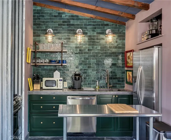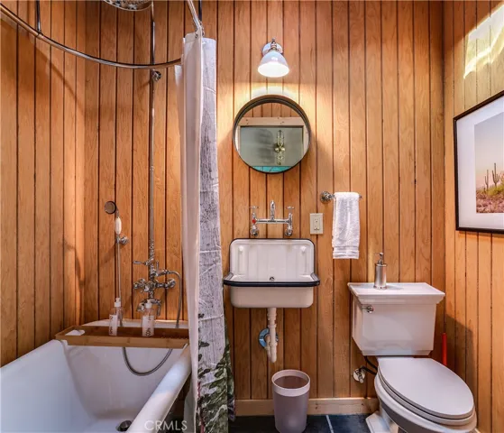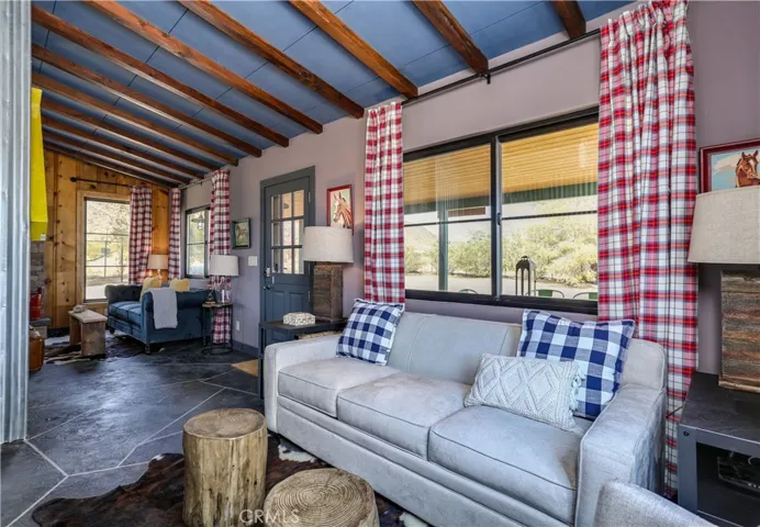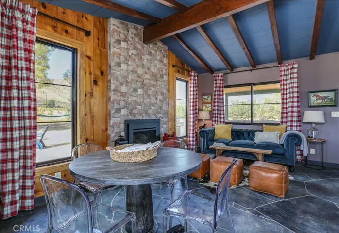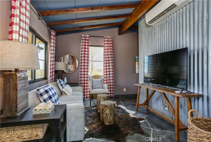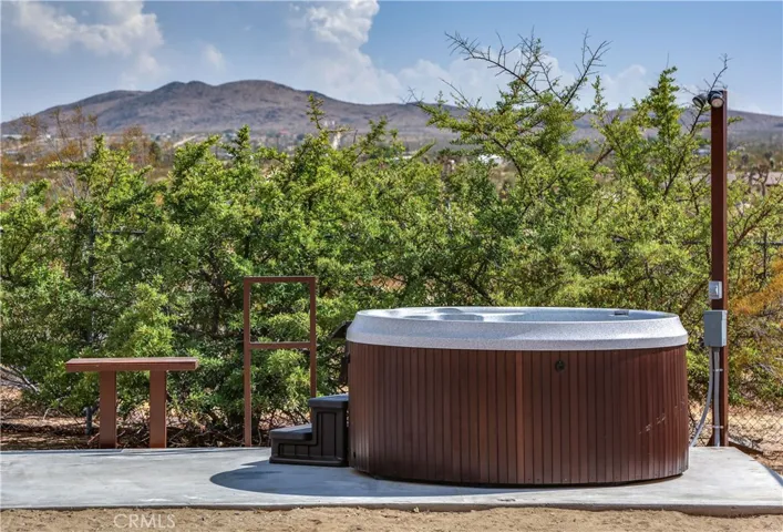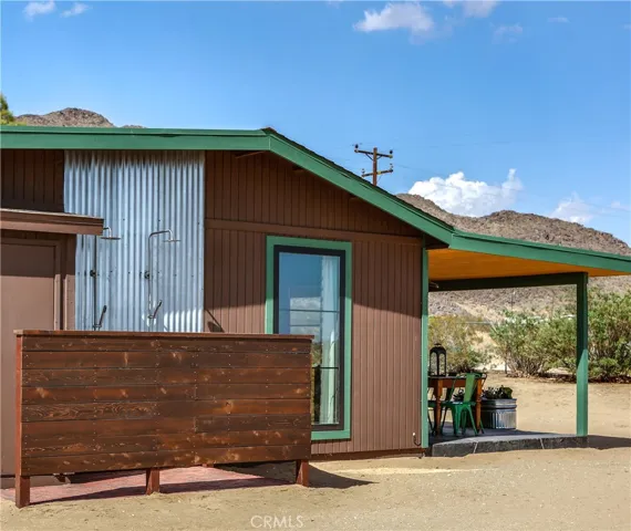Welcome to **Pine + Mountain**, a beautifully reimagined 1950s cabin designed by HGTV star **Doug Wiand**. This 2-bedroom, 1-bath home combines vintage charm with modern comfort, featuring a warm and inviting country cabin feel throughout. Inside, you’ll find a cozy gas fireplace, gorgeous stamped concrete floors that extend outside to the walkway. Prepare meals in a fully remodeled kitchen with stainless steel appliances, concrete countertops, and high-end tile finishes. The elegant clawfoot tub adds a touch of classic character to the bathroom while a skylight lets in beautiful natural light. Every detail reflects exceptional craftsmanship. Step outside to enjoy the best of desert living on five private acres with views in every direction—The Starry Nights are amazing! Relax in the Jacuzzi hot tub, gather around the fire pit, rinse off in the double outdoor shower, or dine under the large covered patio. This home offers a peaceful retreat with designer style, ideal as a full-time residence, weekend escape, or short-term rental. With its proximity to Giant Rock, the Integretron, and King of The Hammers makes the location ideal.