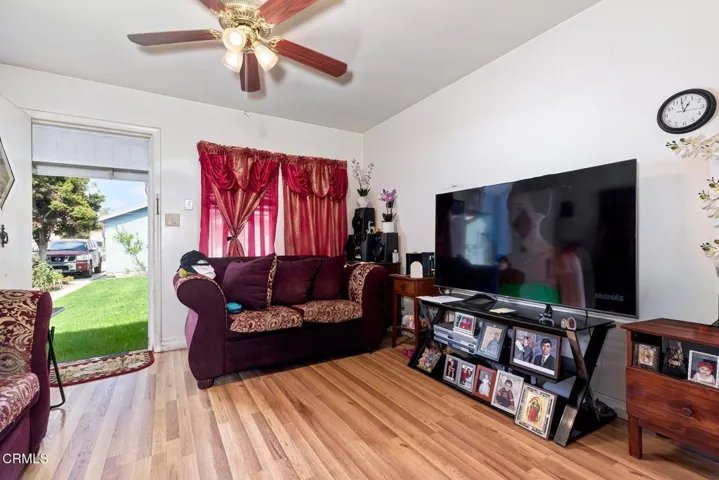 Well cared-for property with two separate homes on a larger lot. Front house, measured at 865 square feet, features two bedrooms and one bathroom. Generous sized living room with vinyl wood flooring, ceiling fan and blinds. Kitchen has tile countertops and ample storage space. Both bedrooms with vinyl wood flooring. Bathroom has tiled flooring and shower over tub. Deep one-car garage with room for storage. Newer oversized concrete driveway with room to park multiple vehicles.One-bedroom, one-bathroom house, measured at 619 square feet, features laminate flooring throughout. Bathroom has shower over tub. Separate storage shed. Subject to state rent control. City of Inglewood offers a sound remediation program which may include new windows, air conditioning, and insulation. Please contact the city for additional information.