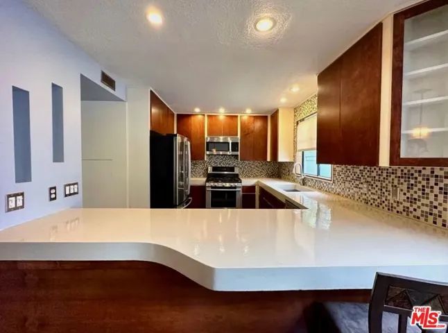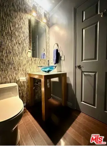 Experience refined West Hollywood living in this two-level, front-facing townhome within a contemporary three-unit building. Modern design meets comfort with rich mahogany bamboo floors, a sleek fireplace, and expansive windows that flood the open living and dining areas with natural light. Perfect for entertaining or relaxing in style. The updated kitchen features concrete countertops, stainless steel appliances, oak cabinetry, and designer tile work, seamlessly blending form and function. A chic powder room with vessel sink adds modern elegance to the main level. Upstairs, the primary suite is a serene retreat with a sitting area, custom walk-in closet, and full bath with sleek vanity and high-pressure shower. The second bedroom is generously sized, with mahogany floors, mirrored closet doors, and its own full bath. A private terrace accessible from the second-floor landing overlooks landscaped gardens, ideal for morning coffee or quiet evenings. Thoughtful details include a stackable washer/dryer, dual-zone thermostats, and secure, abundant storage. Three side-by-side parking spaces and extra storage in a secure gated garage provide convenience and peace of mind. Residents also enjoy a communal garden terrace with modern seating and ambient lighting. Located in a prime West Hollywood neighborhood, steps from Trader Joe’s, John Reed Fitness, The Belmont, Koi, EP & LP, Beverly Center, Melrose Place, Beverly Hills, and Cedars-Sinai Medical Center. This townhome offers easy access to premier shopping, dining, and cultural destinations.