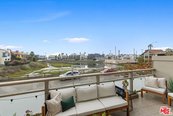 Bathed in golden sunsets and shimmering lagoon views, this west facing Silver Strand hideaway feels like a private beach escape in the heart of Marina del Rey. Every room is infused with natural light and an easy coastal sophistication, where soaring ceilings, wide plank floors, and custom details set the stage for laid back luxury. Recent enhancements elevate the home even further including new LED lighting and designer fixtures, fresh paint, refinished wood floors, and new sliding doors in both the living room and primary suite. Custom closet systems with lucite drawers, updated bath fixtures, and lucite safety panels add thoughtful, modern touches throughout. The kitchen and baths feature granite counters and KitchenAid appliances, balancing everyday function with a clean coastal aesthetic. A chic office nook adds reclaimed wood shelving and a contemporary counter, creating a stylish workspace. The open living and dining areas spill out to a balcony floating above the lagoon, perfect for sunset cocktails or slow mornings as the water glimmers below. Upstairs, the oversized primary suite offers vaulted ceilings, a private balcony with head on lagoon and peek a boo ocean views, and a spa like bath that makes every day feel like vacation. A second ensuite bedroom with its own balcony gives guests or family their own slice of serenity. Resort style amenities include a pool, spa, sauna, sundeck, and lush grounds, plus on site security in a proactive EQ insured HOA with building wide upgrades including balconies, roof, elevators, and waterproofing. All just moments to the sand, Venice Pier, the farmers market, and favorite Strand restaurants, an easy, breezy Marina del Rey lifestyle. Rarely does a home combine this level of location, lifestyle, and views, sophisticated, sun drenched, and endlessly inviting.
