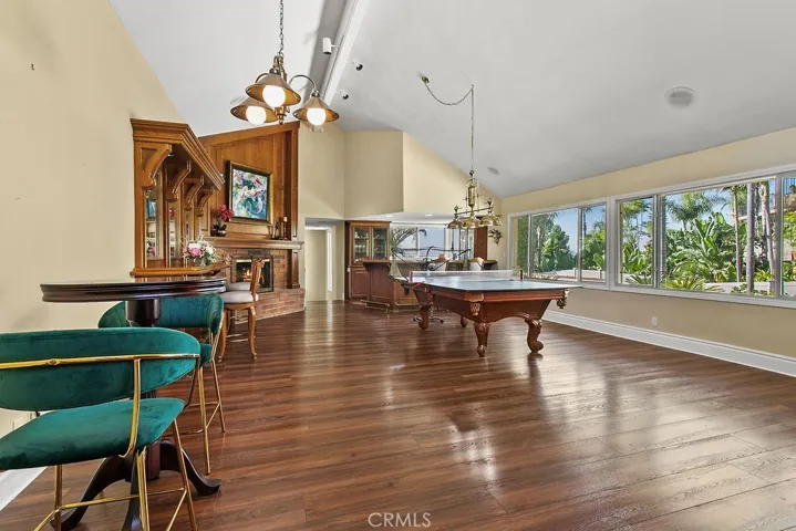 This serene and tranquil Villa Park lux estate enjoys one of the most unique and exclusive locations available on the market today. Tucked away in Villa Parks rolling hills, this expansive 5362 square foot gem boasts a true cul-de-sac location, complete with gated entry. The mix of mid-century modern style and extremely private location gives this estate a feeling reminiscent of the historic Hollywood Hills. Enter through the automated privacy gate into lush grounds with mature landscape, drought tolerant turf and ample on-site parking. Glass inlaid double doors give way to a spacious and inviting entry. Travertine floors, floor to ceiling windows, and crisp architectural lines set the tone for this elegantly finished estate. The living room boasts soaring ceilings, corner fireplace, custom base, and clear pane elevated windows for lots of natural light. The dining room is spacious and expertly located between the kitchen and formal living room. With plenty of room for a 10-person dining set, this dining room is perfect for quiet family nights or those busy holiday events. The kitchen is for the culinary enthusiast, complete with high end Thermador appliances, Sub Zero Fridge, double ovens, 6 burner gas range w/ hood, granite counters, stain grade custom cabinets, and an open ceiling concept. The family room is open and kitchen adjacent giving a great room concept feel and lends itself perfectly to family gatherings and entertainment. The primary bedroom feels open and awash with light due to the cathedral ceilings and corner window set complete with views of the beautiful backyard. The primary bath is finished with wrap-around dual vanity, large soaking tub, skylight, and elegant lead glass picture window for added natural light. Upstairs one finds an incredible bonus room with huge square footage, elegant wood grain built in bar, soaring ceilings, and finely appointed second primary suite. The backyard is peaceful and serene, with tranquil Koi pond, resort like pool and elevated spa, wrap-around patio/loggia, built in BBQ, and private ambiance. Other exciting features include whole house fan, 3 separate HVAC units, fully finished garage with EV charging port, PAID for 39 panel 13.65 KW solar system, mature fruit trees, 4-bedroom PLUS office and private gym, 3 full baths and 2 half baths, skylights, and so much more. Call immediately for additional details.