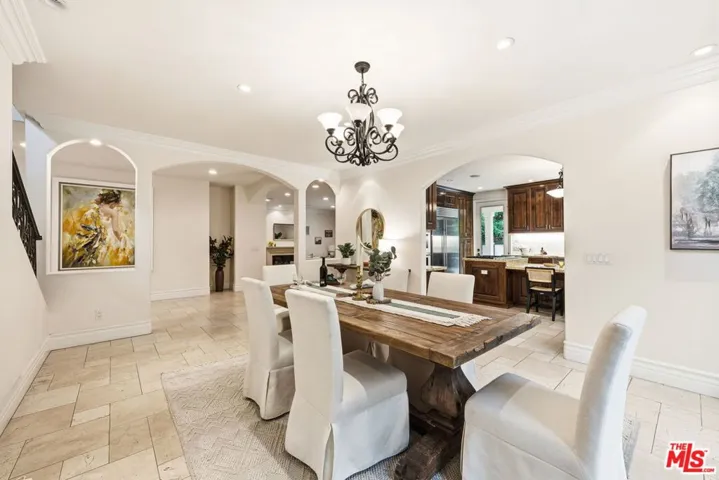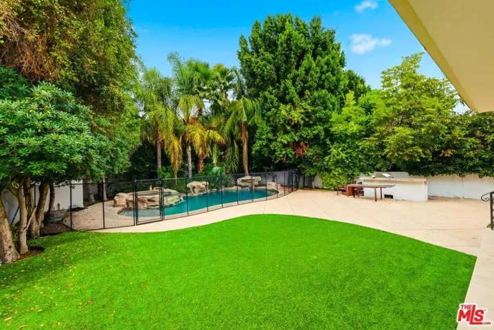 Nestled in one of Encino’s most sought-after neighborhoods, this stunning modern Spanish residence perfectly blends timeless architecture with contemporary design. Behind private gates, a lush tropical setting frames this immaculate two-story home featuring four bedroom and four bathrooms. The open, light-filled floor plan showcases warm wood floors, elegant archways, and high ceilings throughout.The chef’s kitchen is a true centerpiece, equipped with a large center island, Sub-Zero and Wolf appliances, granite counters, and abundant storage seamlessly connecting to a spacious family room with built-in surround sound and fireplace. The main level includes a guest suite, while upstairs the primary retreat offers a fireplace, private terrace, dual walk-in closets, and a spa-like bathroom with jetted tub and steam shower.Step outside to your private resort oasis with a sparkling pool, cascading waterfalls, elevated spa, and built-in BBQ ideal for entertaining or relaxing under the California sun. Located moments from Ventura Blvd, top dining, and Encino Charter Elementary, this is Encino living at its finest.