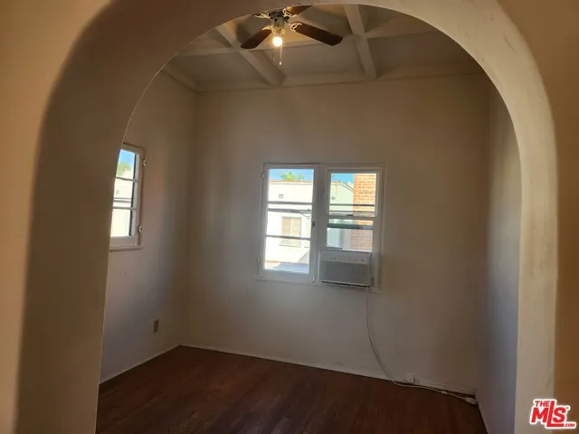Oversized and charming Spanish style apartment located near the Grove. French windows and hardwood floors throughout. Separate living room and dining room. Includes stove and refrigerator. Laundry room on site. Street parking only.