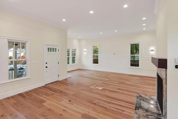 Here is your chance to live in the Heart of the Almond Grove Neighborhood in Downtown Los Gatos! Originally built in the early 1900’s and beautifully remodeled and updated, yet the original charm and ambiance still exists. 3 Bedrooms and 2 full bathrooms. The Primary Bedroom is huge with a spectacular new Bathroom. Hardwood floors throughout. The Formal Dining Room and Living room are highlighted by the wrap around deck. The modern Kitchen has tasteful built-ins, A Breakfast nook, a huge counter with a gas cooktop and breakfast bar. High ceilings throughout. Fireplace in both the Living room and Primary Bedroom. New windows throughout. A splendid private backyard and garden areas. There is a detached garage (which was an old barn) and a concrete parking pad with a convenient alley access. Approximately 2225 Square Feet.