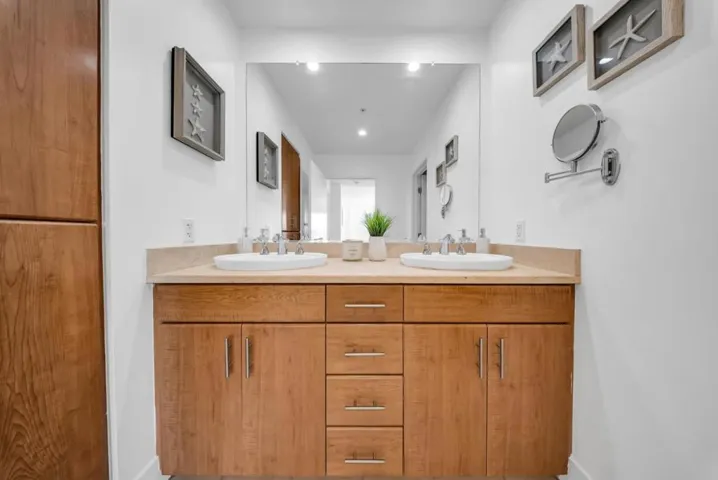 Welcome to a stylish corner condo in the heart of Uptown Oakland, where modern upgrades meet exceptional convenience. This fully upgraded, two-bedroom, two-bathroom residence offers 1,183 square feet of open-plan living with high-end finishes throughout. Positioned on an upper floor, enjoy abundant natural light and sweeping city views that make your morning coffee feel like a scene from a movie also please enjoy the open community herb garden with water feature. The balcony is perfect is perfect for viewing with friends, and the included parking space adds value and ease for busy urban living. The primary bedroom features ample walk-in closet space and a full en suite bath, creating a welcome retreat after a long day. Located just steps from top tech offices like Pandora and WeWork and under a 10-minute walk to BART, this condo offers a rare lifestyle blend of work, culture, and entertainment. With Whole Foods, art schools, cafes, and Frank Ogawa Plaza nearby, you’ll never run out of inspiration or good coffee. Bonus: Internet is included, so you can stream, browse, or Zoom without a hiccup. Whether you’re an owner-occupant or investor, the potential for rental income is strong in this dynamic and growing neighborhood. This is city living with a spark and a parking space.