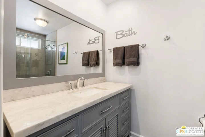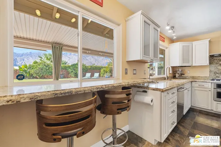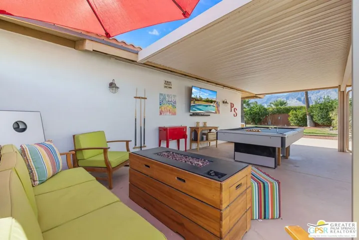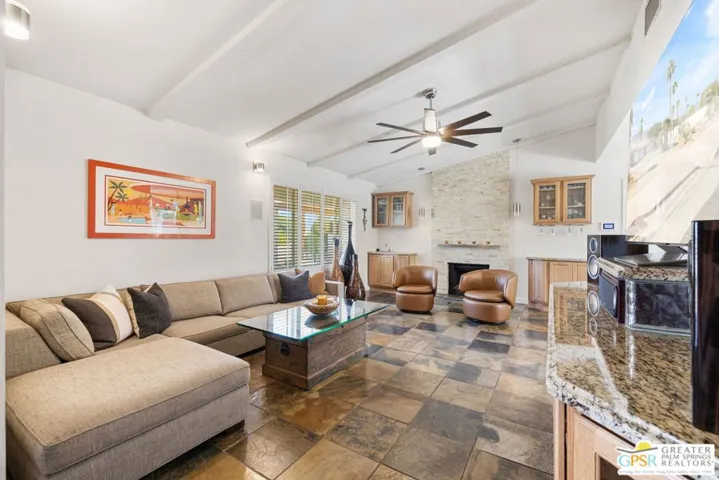 THE ONE you’ve been waiting for! A showcase of PRIVACY, VIEWS, and desert MAGIC on one of the finest settings in Central Palm Springs. Hitting the market for the first time in more than two decades, this residence delivers unobstructed 180-degree views centered on the majestic San Jacinto range. Outdoor living reigns supreme with multiple conversation areas, a sparkling Pebble Tec pool and spa, swaying palms, and flourishing citrus that set the stage for the ultimate desert lifestyle. The outdoor JennAir grill and a second covered patio with pool table create the perfect entertainment zones for gatherings large or small. Guests are welcomed through a custom front gate to the home’s inviting entry. Inside, the main living area showcases a beamed and vaulted ceiling, stone fireplace, wet bar, and tile flooring that enhance the resort-like vibe while opening to formal dining and a covered patio. The chef-designed kitchen features stylish finishes, built-in JennAir appliances, double ovens, and a breakfast bar framed by incredible views. Bedrooms enjoy thoughtful separation, all with hardwood flooring underfoot. The primary ensuite offers an updated bath and direct access to the outdoors. Guest Bedroom Two, currently used as an office, shares a full bath with Guest Bedroom Threecomplete with dual vanities and direct access to the pool area. PAID-FOR SOLAR added in 2023 enhances efficiency. Notable upgrades include Low-E dual-pane windows and sliders, replaced attic insulation and ductwork, plantation shutters, insulated garage door, refreshed exterior stucco and paint, and B-Hyve smart irrigation. The attached two-car garage features built-in cabinets and upgraded flooring. All this from a remarkable vantage point that captures both San Jacinto and San Gorgonio peaksplus the famed Tahquitz “Witch” shadow cast across the canyon, a true desert phenomenon. FEE LAND, you own it, and the property is currently eligible for a SHORT TERM RENTAL permit from the city. Take the Matterport Virtual Tour for a better sense of flow.