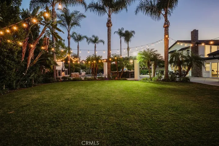 Outside, enjoy the ultimate Southern California lifestyle with a sparkling pool, sports court, built-in BBQ and bar, outdoor fireplace, full bath, and expansive grassy area. Additional highlights include motorized awnings, whole-home filtration system, integrated sound and security systems, and impeccably maintained landscaping.