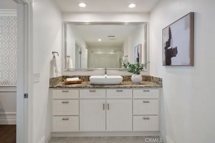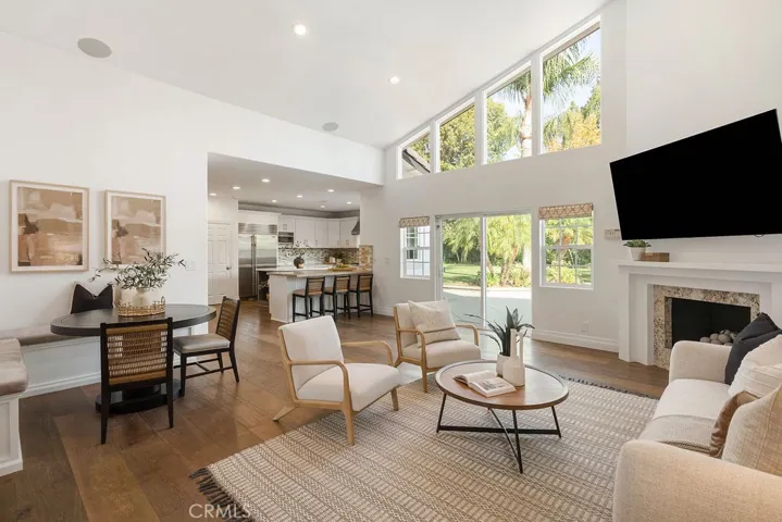 Exquisite custom estate on a quiet cul-de-sac in the heart of Villa Park. Set on a sprawling 20,000 sq ft lot, this remodeled residence blends timeless design with resort-style living. A grand double-door entry opens to soaring ceilings, wide-plank wood floors, and light-filled living spaces that flow seamlessly from formal rooms to an expansive great room with a dramatic fireplace and walls of glass overlooking the backyard.