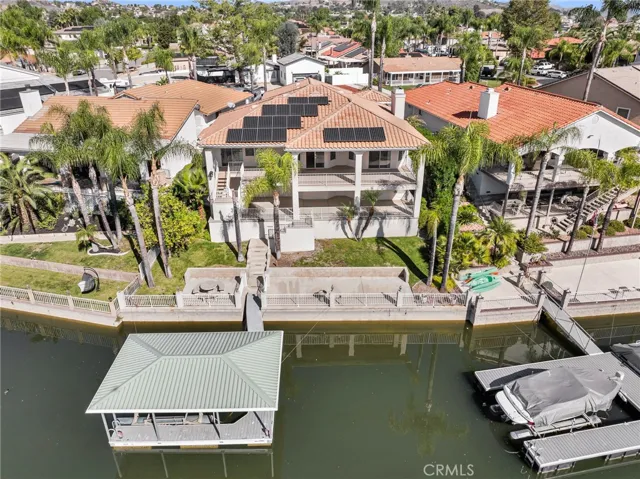 Welcome to lake life! Live like you are on vacation all year round. A rare find in Canyon Lake, this waterfront single story home with a three car garage and paid solar offers the ultimate blend of comfort, convenience, and lakefront living. Beyond the double door entry, you’re welcomed into an open family room with a wood burning fireplace and beautiful views that flow out to the spacious deck – perfect for relaxing or entertaining. The kitchen features abundant cabinetry, granite countertops, a walk-in pantry, and reverse osmosis filtration. The large primary suite enjoys its own deck access, lake views, a walk-in closet, and an ensuite bathroom with a soaking tub, walk-in shower, dual sinks, and private water closet. The true single-story design has no interior steps, complemented by a flat driveway and a finished three car garage with built-in storage and pull down stairs for attic access. Outside, a lower patio area is ideal for a ping pong table, hot tub, or storing your lake toys, and the covered boat dock with lift makes enjoying the water effortless. With indoor laundry room and a desirable East Bay location within walking distance to Steelhead Park, this home captures the essence of Canyon Lake living at its finest. Canyon Lake is a private, gated community offering an array of recreational opportunities – enjoy boating, waterskiing, swimming, fishing, paddle boarding, and kayaking. Golf enthusiasts will appreciate the SCGA-rated 18-hole course, while 16 parks and beaches, a restaurant, pool, equestrian center, campground, and sport courts cater to every interest. *Some photos have been virtually staged for visualization purposes*