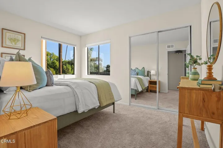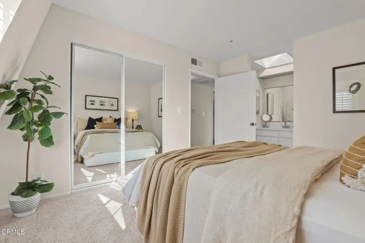 This sophisticated end-unit townhouse, situated in an amazing location in the heart of Pasadena, shares only one common wall and offers 2 bedrooms, 2.5 bathrooms, PLUS an office/den. The inviting open floor plan features a bright and airy living room enhanced by spacious ten-foot ceilings. The light-filled dining area offers southern views of the palm-tree lined street. The stylish kitchen features a breakfast bar, elegant quartz countertops, a classic white tile backsplash, stainless steel appliances and an abundance of cabinetry. There is also a convenient laundry closet in the kitchen with a new stackable washer and dryer. An upgraded powder room completes the main level of the home. Upstairs, the primary suite offers delightful treetop views with an updated en-suite three-quarter bath enhanced by a bright skylight. Off the hallway there is a second bedroom, an office/den and a full bathroom, also with a skylight. Additional built-in cabinets, located in the upstairs hallway, offer additional storage. A spacious, attached two-car garage completes this lovely home. There is a pool in the complex and HOA dues include earthquake insurance, exterior building insurance, water, trash and landscaping. With close proximity to an abundance of shopping, restaurants, grocery stores (such as Erewhon, Target and Trader Joe’s) and the Playhouse Village, this townhouse exemplifies all that Pasadena has to offer. Welcome home!