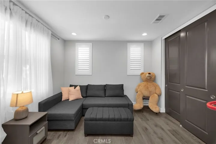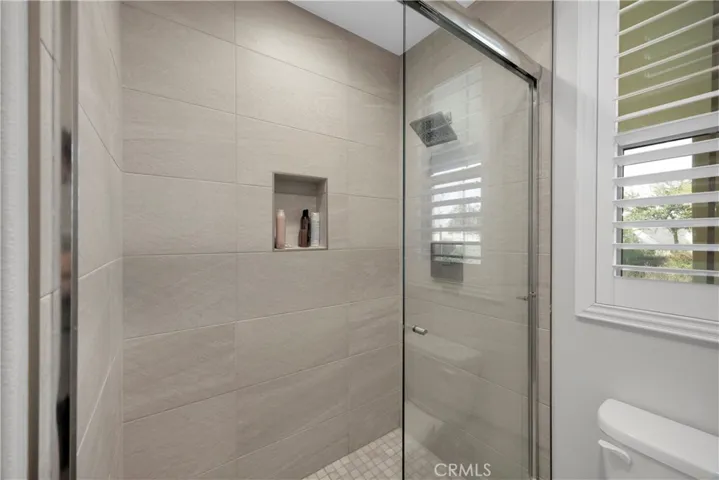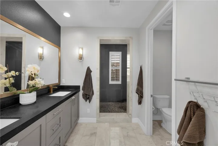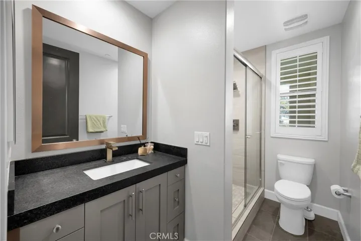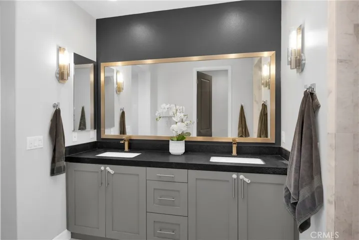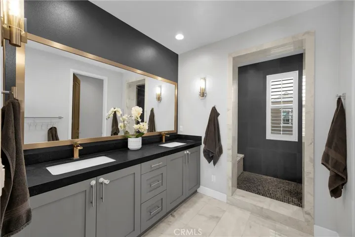 Up on the third floor you’ll discover two mirror image secondary rooms with built-in closet organizers, ceiling fans and blackout shades. The bathroom is across the hall with leathered granite counter, framed mirror and a shower/tub tiled to the ceiling. The Primary bedroom is tucked at the end of the hall with beautiful light streaming in the windows. This sanctuary includes a ceiling fan, blackout shades, focal painted wall, and a custom closet with built-ins. The ensuite bath is zen-like with framed mirror, leathered granite countertops, gorgeous sconces and a stunning walk in shower with beautiful tile work.