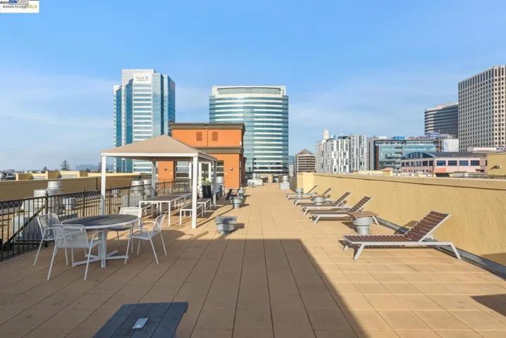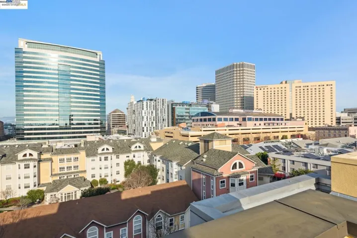 Welcome to Market Square, heart of Oakland’s historic district! This stylish 1-bedroom, 1-bath condo features soaring 10-foot ceilings and an abundance of sunlight that floods the south-facing unit. This unit has brand new wood flooring and new interior paint. The building offers numerous amenities designed to enhance your lifestyle. Relax in the sauna and steam room, stay fit in the upscale gym, or catch up on work in the designated workspace and conference room. Adjacent to the gym is a serene garden area, ideal for coffee and lunch breaks. For those who love to entertain, the rooftop deck awaits! Equipped with a barbecue, it offers panoramic views of downtown Oakland, the bay, and even glimpses of San Francisco’s iconic skyline. The condo’s kitchen boasts granite countertops and stainless steel appliances, inspiring your inner chef. After a long day, retreat to the tranquil bedroom with a generous walk-in closet, ensuring ample storage for your wardrobe essentials. Additional conveniences include a large coat closet and in-unit washer and dryer. Enjoy convenient access to nearby Lake Merritt, downtown Oakland, Jack London Square, several BART stations and the jewel of Oakland…Lake Merritt.