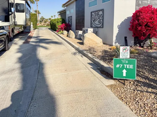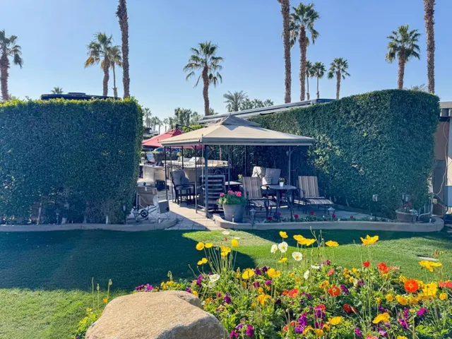 Outdoor Resort Indio is a class A only RV resort.Stunning lake and golf course views set the stage for this exceptional luxury RV lot, perfectly positioned beside the 7th tee for an unbeatable blend of beauty and excitement. This private and peaceful retreat features a spacious outdoor kitchen equipped with premium stainless steel appliances, including a hot water sink, dishwasher, grill, burner, oven, and under-counter refrigerator–ideal for effortless outdoor entertaining. A charming gazebo provides a shaded escape, while elegant landscaping enhances the serene ambiance. Fully furnished for comfort and style, this lot offers a seamless move-in experience, with a golf cart available for negotiation. Experience resort living at its finest with this one-of-a-kind property.