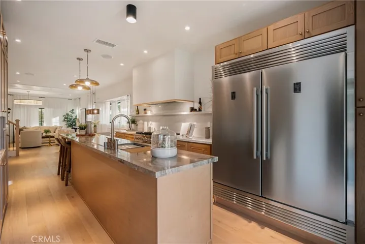 Exquisitely restored, a rare Curated Designer Craftsman once a haven where directors sketched storyboards, artists composed music, and scripts were dreamed into existence. You feel the History the moment you step inside. This is not just a home, it’s a vibe, a muse, an energy. Completely re-imagined with an elevated designer aesthetic, this 2,800+ sq ft residence welcomes you with a Handcrafted Walnut wood door leading into an open-concept sanctuary of white oak flooring, custom millwork, and natural light. The beautiful Sunlit Chef’s entertainer kitchen is the heart of the home, with natural stone countertops, a Quartzite island, custom cabinetry, 48” dual fuel Professional range, and a 60” Commercial grade refrigerator, this Home is designed for Gatherings where unforgettable evenings unfold. The living room, is curated with coffered ceilings and wainscoting. Kitchen opens through floor-to-ceiling Bifold doors, merging Indoor and Outdoor living into one seamless, cinematic backdrop. An Interior Music System is a special touch. Each space has been Curated with beautiful fixtures throughout showcasing the craftsmanship and intentionality poured into every detail. The primary suite is a true retreat with soaring ceilings, warm natural stone, a spa-like wet room with shower + standalone soaking tub, custom vanities, and luxury finishes that transport you straight into serenity. Two additional ensuite bedrooms offer private, calming atmospheres, and space to restore. Home Office space is expansive with its own private entrance. Two Laundry Centers make this an ease featuring laundry area on each floor. Step outside to the private outdoor oasis with mature trees, drought-tolerant landscaping, and fenced privacy creating a lush, peaceful escape in the heart of Los Feliz Village. The Ample driveway + four parking spaces complete the convenience. Special Highlight: A one-bedroom Casita – ADU with its own address, soaring ceilings, custom stone counters, designer cabinetry, and iconic arched windows that open to the garden. Perfect for Guests, studio, or premium rental income. This is a trophy property, and now ready for the next chapter. Only Steps to Los Feliz Village dining, boutique cafes, and Griffith Park trails. Don’t miss out on this Stunning Home, we Welcome you to take a private tour! Per prior occupant, the property has been enjoyed by creative professionals. Buyer to independently verify historical, usage, and any production-related information.