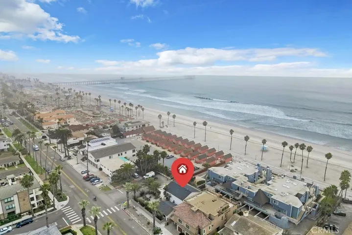 Each upper unit features one and a half baths, a full kitchen, in-unit washer and dryer, and bright living spaces that open to private decks overlooking the Pacific Ocean, Oceanside Pier, and harbor. The detached cottage includes a full kitchen, living room, bathroom, washer and dryer, and a private patio.