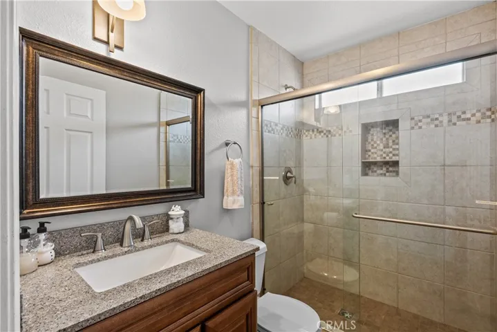 Beautifully updated 3-bedroom, 3-bathroom home offering 1,771 square feet of living space in the highly sought-after community of Stevenson Ranch. Located on a cul-de-sac at 25726 Emerson Lane #21, this meticulously maintained residence showcases true pride of ownership and is move-in ready. The inviting floor plan features a full bedroom and bathroom downstairs—perfect for guests, multigenerational living, or a home office. High ceilings allow more natural light to enter the main living area, and the newer “wood look” real tile floors add a high-end touch downstairs. The bright and open kitchen is highlighted by granite countertops, stainless steel appliances, updated finishes, and ample cabinetry, leading to a separate dining room that provides the perfect setting for gatherings and special meals.