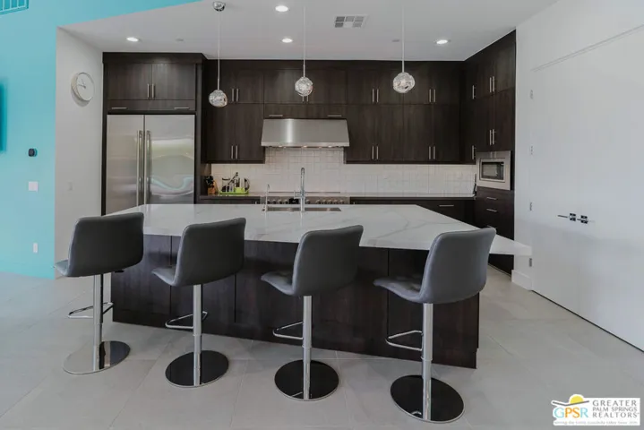 Step inside this striking Fiore model-an architectural single-story masterpiece tucked within the gated enclave of the renowned Escena Golf Club in Palm Springs. Built in 2023 and custom-upgraded far beyond the builder’s finish, this contemporary residence offers 3 bedrooms, 3 baths, and 2,593 sq ft of refined interior living space on a 6,970 sq ft lot.The open-concept great room welcomes you with soaring 17′ ceilings, walls of glass, and panoramic views of two golf course fairways surrounded by the towering San Jacinto Mountains. Expansive sliders erase the boundary between indoors and out, filling the home with natural light and creating a seamless indoor-outdoor experience. Oversize porcelain tile pavers extend outward from the home interior, integrating both west and north facing outdoor entertainment areas, and creating a cohesive, spacious architectural flow that perfectly complements the exterior’s extended desert landscape. At the heart of the home, the chef’s kitchen blends beauty and performance with a 48″ Fulgor Milano 7-burner induction range and double oven, JennAir Professional side-by-side built in refrigerator/freezer, microwave and 48″ professional hood, SimPure reverse osmosis water filtration system, and oversized Calacatta quartz island. Every element was designed for entertaining and everyday luxury.The primary suite is a serene retreat featuring a spa-inspired bath with floating dual vanities, soaking tub and spacious walk-in shower offering accessibility from both sides. Two additional bedrooms with en-suite offer privacy and flexibility for guests, family, or a dedicated office. Step outside to your private sanctuary, where an in-floor system heated pool, electric pool cover, and mountain views invite relaxation at any hour. Owned-Solar, Tesla Powerwall, Hague WaterMax purification system, and LG mini-split air-conditioned garage further enhance the home’s smart, sustainable design. The landscaping is a true work of art – professionally designed and upgraded with custom desert plantings, sculptural accents, and custom-designed entry gates that elevate the home’s architecture and create a striking first impression. Every exterior element has been curated for low maintenance and maximum impact. Within Escena, residents enjoy resort-style amenities including a championship golf course, scenic walking paths, a restaurant and bar – all just minutes from downtown Palm Springs dining, shopping, and festivals. 4321 Lumina Way is a masterclass in modern desert living – where sophisticated design, smart technology, and thoughtful upgrades combine to create an effortlessly elegant retreat.