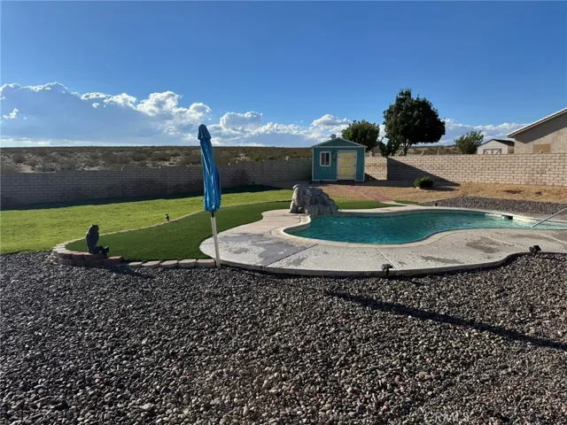 This spacious home boasts an open floor plan with 4 bedrooms, 2.5 bathrooms, and a versatile den that can easily become a 5th bedroom or private office. Set on a rare half-acre lot, the backyard is designed for fun and relaxation with a private pool, built-in outdoor grill, and direct access to the desert trails right behind the property. Perfect for hosting family, entertaining friends, or spending weekends exploring the High Desert.