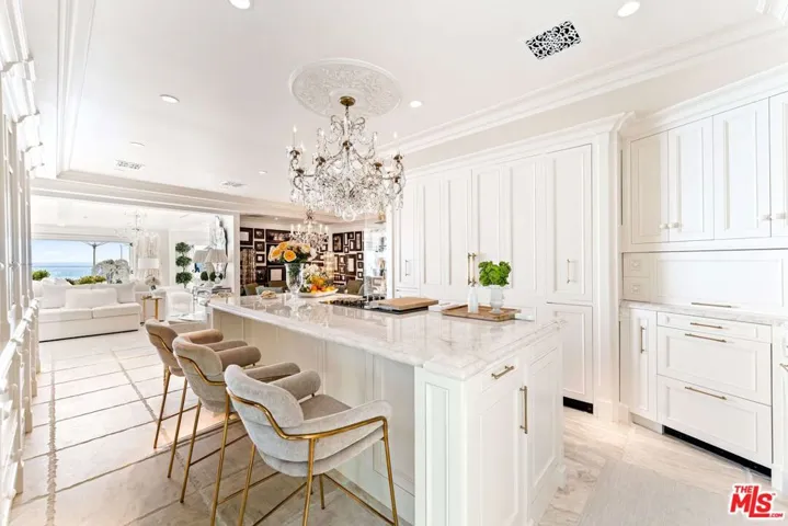 This refined beachfront residence gracefully intertwines luxury with coastal living. A standout feature that many beachfront properties lack is an abundance of privacy. The property is gated and there is no immediate residence on either side. Upon walking through the entry, one is taken away by the mature oak tree inside the spacious courtyard. From the garden, one has head-on mountain views, while from the interior and on the rare 75ft beachfront deck, there are panoramic ocean views from the Queen’s Necklace to Catalina. Inside the single-story residence, double-paned accordion glass doors open up and allow for the ocean breeze and natural light to fill the space. The home has been customized from the Princess Diana stone up to the double-crown molding. It comes completely turn-key with every amenity one would need. An open floor plan with vaulted ceilings and dual living areas allow for a compelling entertainment space. The grand chef’s kitchen comes fully-equipped with high-end appliances and features a marble island, intimate garden-view dining nook and separate formal dining room with a backlit wine case. Wake up to the sunrise in the exquisite master suite with double-height fireplace, floor-to-ceiling mirrors, and private oceanfront balcony. The master bath features an oversized soaking tub, large marble steam shower, and walk-in closet. Located in eastern Malibu and close proximity to world class dining, shopping and entertainment.