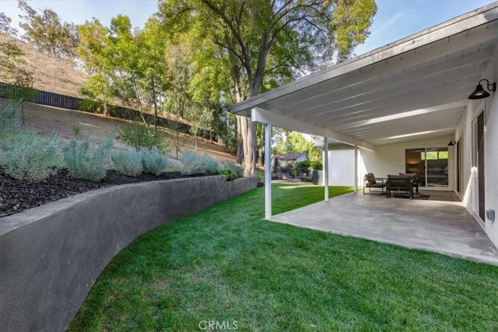 Tranquility awaits at this incredibly soulful retreat in one of the most coveted pockets of Woodland Hills. Set amongst an abundance of mature trees and situated on a expansive homesite, this stunning residence makes you feel like you’re a world away from the city, while conveniently located just a short distance to all of the fantastic shops, restaurants, and markets that Woodland Hills and nearby Calabasas have to offer. Step through the charming entry to find open and airy spaces, all of which are impeccably designed and exude the utmost attention to detail. The dining room and spacious family room have sliding doors that open to the serene outdoors. The light-filled formal dining room flows seamlessly into the kitchen for effortless entertaining. The impressive kitchen is a Chef’s dream and is well-appointed with stainless steel appliances – ample cabinet and countertop space, tons of natural light. An adjoining laundry room provides extra storage and garage access. Three generously sized guest bedrooms offer leafy views and share a beautifully designed bathroom with new tile in the shower and marble tile flooring. The home’s primary bedroom is simply heavenly, featuring ample closet space, and a spa inspired en-suite bathroom with a marble tiled shower that is bathed in light. Sliding glass doors lead you to the absolutely magical outdoors. Here you’ll discover a sprawling yard with multiple areas to lounge and dine, and fire pit, all while experiencing total privacy and looking out to a canopy of trees in every direction. The dreamy outdoor spaces provide the perfect setting for weekend brunches and dinner parties with family and friends. Additional features of the property include new windows, new roof and a new water heater. This is Southern California living at its best.